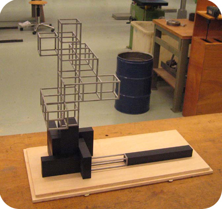 Dit model is gemaakt om het idee van de kunstenares over te brengen aan de aannemer die het beeld gaat plaatsen. Van de schetsen van de kunstenares is een technische tekening gemaakt, die vervolgens geproduceerd is. Het is gemaakt van staal en PVC, met een houten bekisting voor het vervoer naar Zweden.