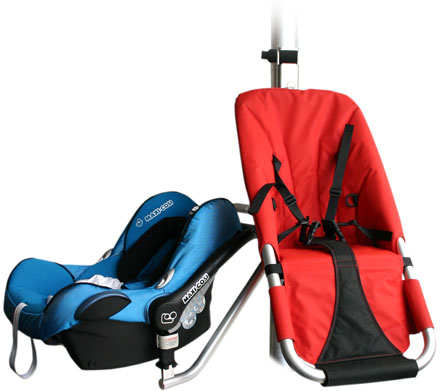 zitje plaatsnemen. Voor jongere kinderen bestaat de mogelijkheid om de Maxi-Cosi of Römer aan de SeaSwing te bevestigen. Door de vrije ophanging van